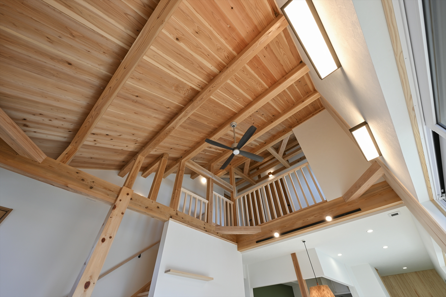 写真では伝わり切らないのが、木の匂い・足ざわり・声の響き。1.5階建て×勾配天井の良さは「高さが変わる居場所」が連なること。立つ・座る・寝ころぶで視界が変わり、同じリビングでも気分が切り替わります。ぜひ会場で体感して、日々の暮らしを思い浮かべてみてください。